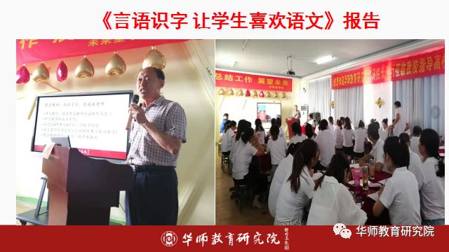 由华师教育研究院特聘专家王炳新,为老师们做了长达3小时的主题报告《言语识字 让学生喜欢语文》。