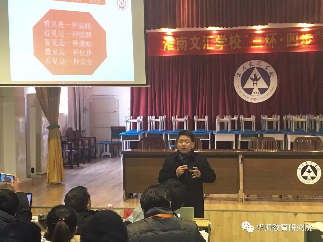 12月21日,华师教育研究院院长房涛、副院长梁恕俭再次走进这所可亲可敬的学校,对一年下来的课改工作进行阶段性验收指导。淮南文汇学校校长童敬慧、王丽琴、学校全体教师共同参加了此次为期一天半的活动。